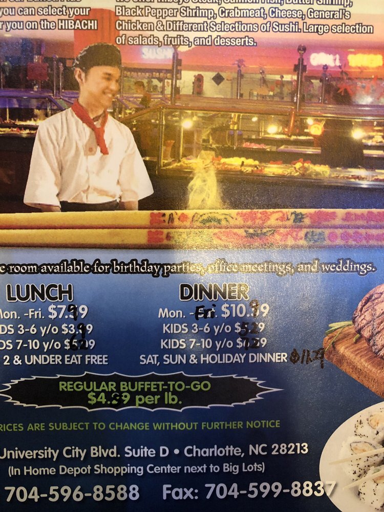 River Buffet & Grill offers a diverse menu with a wide selection of food items. Customers rave about the salt and pepper chicken, coconut shrimp, and surprisingly good sushi. The hibachi and sushi options are included in the buffet without additional cost, adding value to the dining experience. The restaurant is family-friendly with spacious and inviting decor, making it a great place for groups or families. The attentive wait staff ensures prompt drink refills and plate removal. Despite the crowded atmosphere, the delicious food and accommodating service make it a favorite among customers. From fresh fruit selections to a variety of vegetable dishes, River Buffet & Grill offers something for everyone. Highly recommended for those looking to enjoy a diverse buffet in Charlotte, NC.